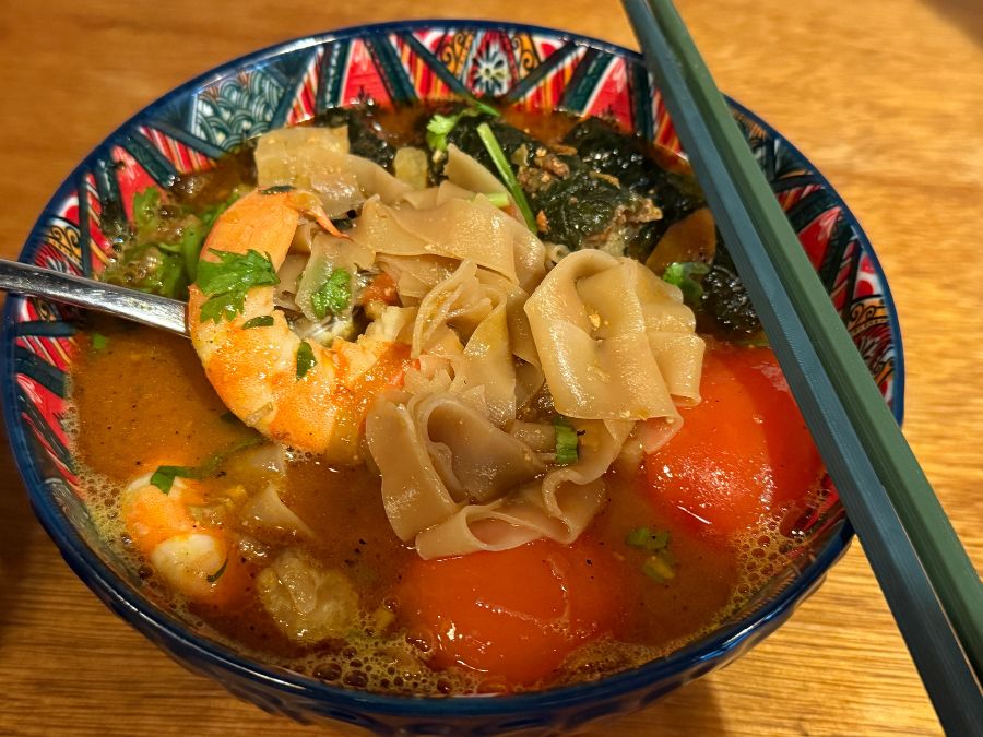 The Cháo Canh at Bac Viet is a less common Vietnamese noodle soup. The eatery describes their dish as “chewy tapioca noodles served in our slow-cooked pork-bone broth, with handmade pork-balls, fresh fish & vibrant herbs”. The dish had clean and fresh flavours (thanks to fish slices and herbs) but felt a little too light in depth of flavours. The Cháo Canh is worth trying for its uniqueness and fresh elements, but if you’re looking for the deepest flavour punch, the pho or the signature red-rice noodle dish might hit stronger.
